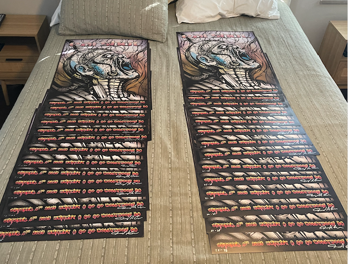 While sketching poster concepts for my longtime friend Shawn Morgan—who’d been invited to join Earshot for their 2025 tour—I decided to create a piece for their Whisky a Go Go show even after he had to step away. Revisiting the band’s catalog led me to their 2022 single “You + I,” which sparked the idea of a human–cyborg hybrid fighting through its own circuitry for love and connection. The final piece became a reflection on identity, freedom, and breaking out of a mental cage to feel something real.